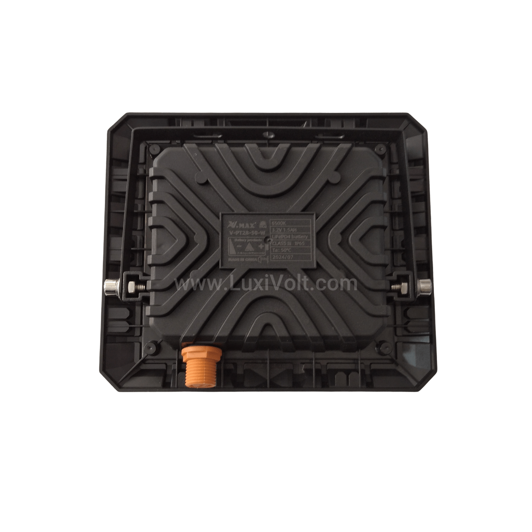 باتری لیتیومی با ظرفیت بالا، امکان روشنایی طولانیمدت در طول شب را فراهم میکند. در صورت شارژ کامل در روز، این پروژکتور میتواند تا ۱۰ ساعت بهطور مداوم نوردهی کند.