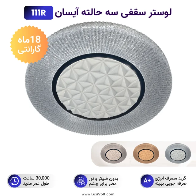 لوستر سقفی آیسان مدل مروارید شب ISUN-111R | نورپردازی مدرن و سه حالته
